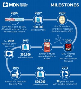 Mozilla 开发者网络今天10岁了 业界资讯 早在2005年2月份,一个小型的开发者团队建立,致力于为web开发者打造开放、免费、构建线上社区资源。几个月以后的2005年7月23日,最早的 Mozilla Developer Network(以下简称MDN)开发者网络站点上线,随后为其... 2015年7月24日