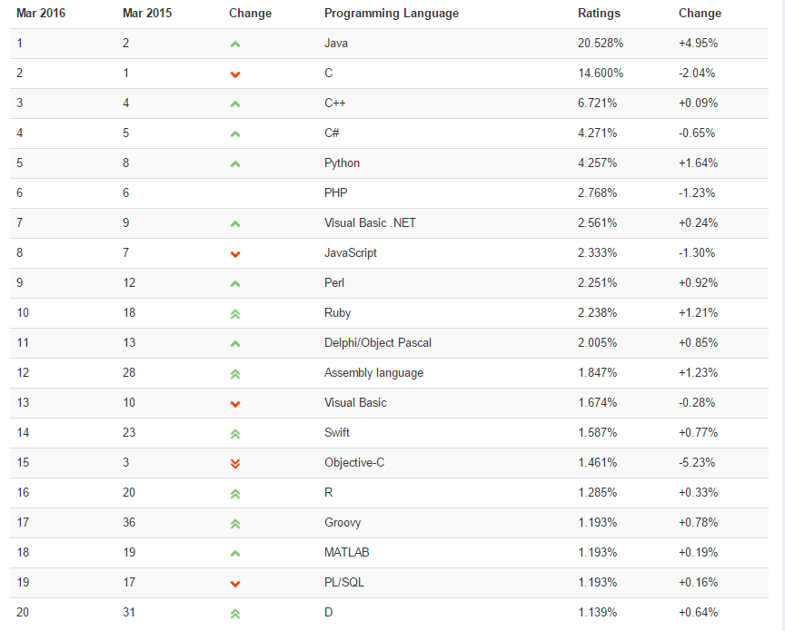尽管软件行业在近年来飞速的发展,但是编程语言却没有那么快速的推进。对比10年的TIOBE榜单,你会发现尽管10年过去了,很多编程语言依然在前10名,不同的只有VB,还有就是PHP和Perl交换了位置,以及更现代化的C#,Python 和Javascript。Objective-C 在这10年中曾经一度进入前3名,但是在苹果公司发布Swift之后,它就正在被迅速替代。也许很多人由此断言未来的10年 依然很多诞生出一个体量较大的新编程语言。然而事实并非如此,看似平淡的10年,编程语言一直得进行着内部的迭代发展。比如Java 8 ,C++11 Python3 和PHP7等等,这些语言在不断发展新的特性,对于工程师而言,接受一门熟悉的编程语言的一些新特性和玩法,显然比完全去学习接受一门新的编程语言要来的轻松和容易接受。