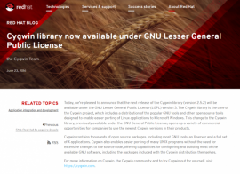 Cygwin 库切换到 LGPL v3 许可证 业界资讯 Red Hat宣布,Cygwin 库的下一个版本将采用LGPL v3许可证。Cygwin库之前采用的是GPL许可证,采用更宽松的LGPL后将方便企业在其产品中使用Cygwin。Cygwin库是Cygwin项目 的核心,Cygwin项目目的是让Windows系统运... 2016年6月25日