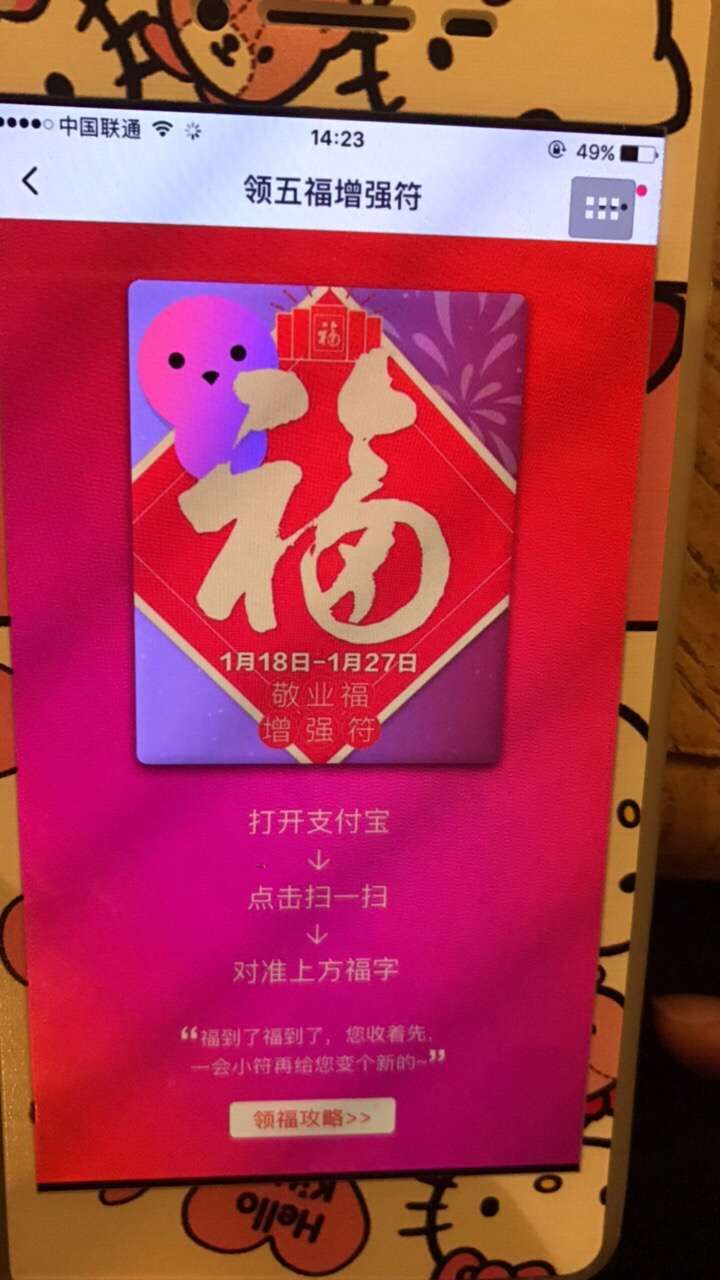 敬业福一直以来都是我们的硬伤,实在是恶心,试过很多方法都不行,就在刚才,朋友分享的一个福字确实可以扫到敬业福,而且笔 者已经扫到两张了,非常给力! 2017如何扫到支付宝敬业福? 您只要对着如下的福字扫!肯定能扫到! 2017年1月24日更新动态 淘江湖分享到淘江湖开心网分享到开心网豆瓣分享到豆瓣人人网分享到人人网腾讯微博分享到腾讯微博新浪微博分享到新浪微博QQ空间分享到QQ空间微信分享到微信 Nginx 1.11.9 发布,Bug 修复版本Qt 5.8 正式发布, C++ 跨平台界面库 相关文章linux centos8升级openssl 3.0.8版本全过程2023年3月13日共享茶室加盟为什么不能做割韭菜模式2023年2月26日深圳企业APP制作公司讲电商APP的价格!2022年4月13日2021年便宜好用的外贸主机服务器推荐 – siteground2021年7月7日一套完善的运营级别民宿pms系统、民宿运营系统该是怎么样的?2020年12月27日仿花筑旅行app酒店民宿微信小程序-芊雅雅居酒店民宿系统上线2018年11月23日