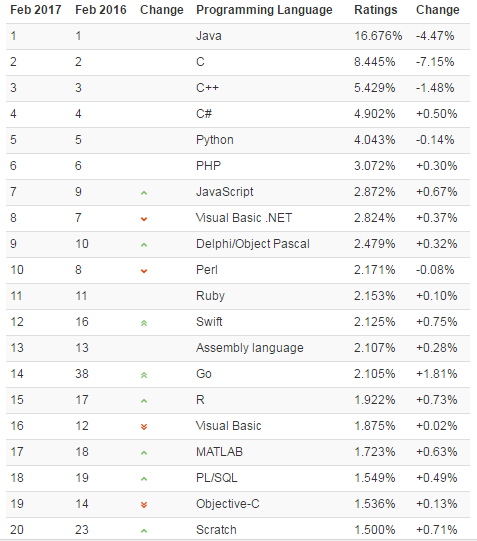2 月编程语言排行榜 TOP20 榜单:
