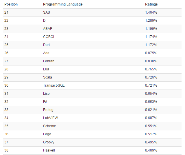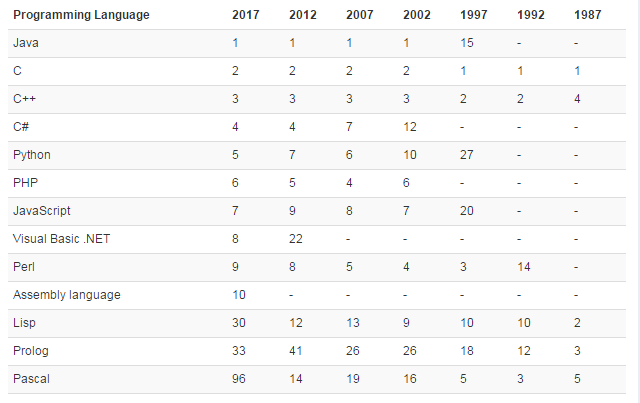 这个排行榜可以用来考查你的编程技能是否与时俱进,也可以在开发新系统时作为一个语言选择依据。