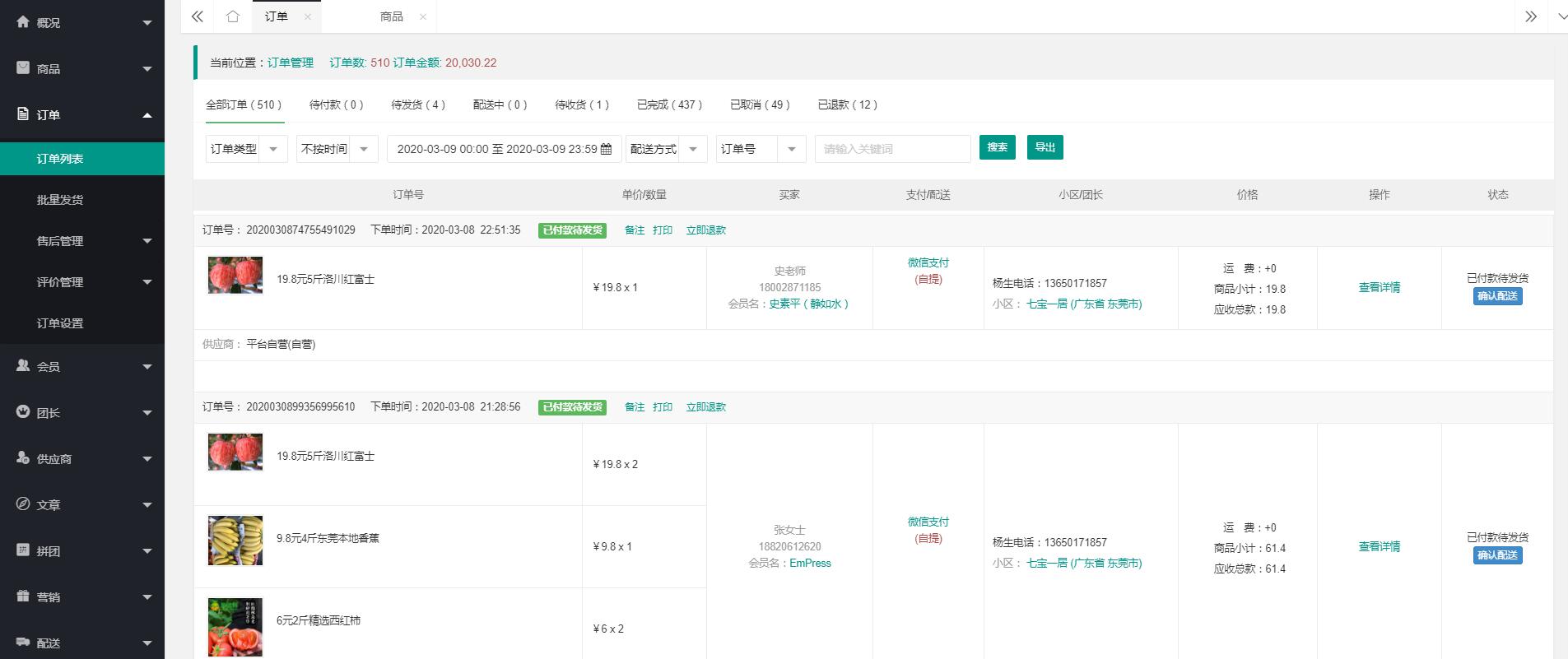 我们的社区团购经过1年多的淬炼,并且经过真实运营,我们结合实际场景做了很多调整,看看我们运营中的系统截图