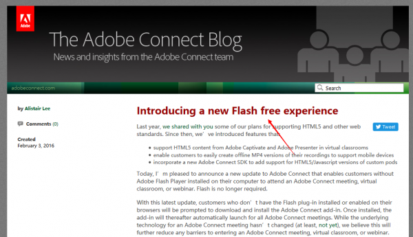 很显然,Adobe Flash正在慢慢死去,即便Adobe公司从来都避讳这么说。但今天,Adobe在自家的Adobe Connect中抛弃了Flash,按照国外媒体的说法,这表明就连Adobe公司本身都已经不怎么待见Flash了。或许这也是Flash未来走向终点的一个表 现。