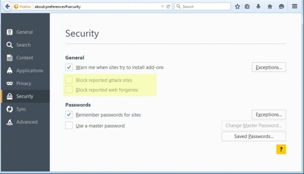这两个PUP除了在用户正常浏览合法网站时注入广告之外,还 偷偷关闭Firefox浏览器的安全浏览功能。安全浏览是由谷歌创建和管理的服务。安全浏览无非是一份包含恶意和非法网站URL黑名单。这份名单是由谷歌 和Mozilla工程师不断更新,实时工作,以保护用户上网的安全性。
