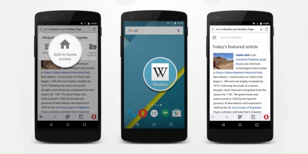 据外媒最新报道,现在,Opera为Android版浏览器用户推送了更新,更新后的应用增加了包括在手机主屏页面添加网站截屏在内的数项实用功能。也就是说,当用户在Android上使用Opera浏览页面看到感兴趣的页面时可通过选择“添加至主屏(add to home screen)”将该页面放到主屏,这样下次只需在主屏轻点Opera图标就能快速访问该网页。