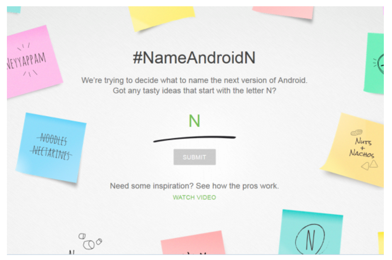 目前,Android N(Android 7.0)正在进行Beta测试,预计夏季末Nexus设备率先尝鲜正式版,秋季(8月~9月)对外公开。不过,还有一个有趣的悬念尚未揭晓,就是关于Android N的昵称或者说内部代号。按照Android的命名惯例,这一代的Android N名称应该是一个以N开头的甜点,网友现在贡献的点子有——