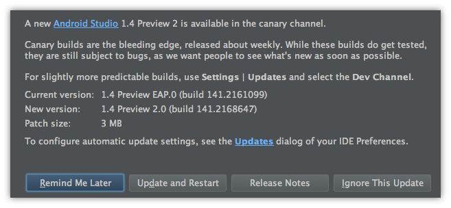 - Mac: https://dl.google.com/dl/android/studio/ide-zips/1.4.0.1/android-studio-ide-141.2168647-mac.zip (339 MB)