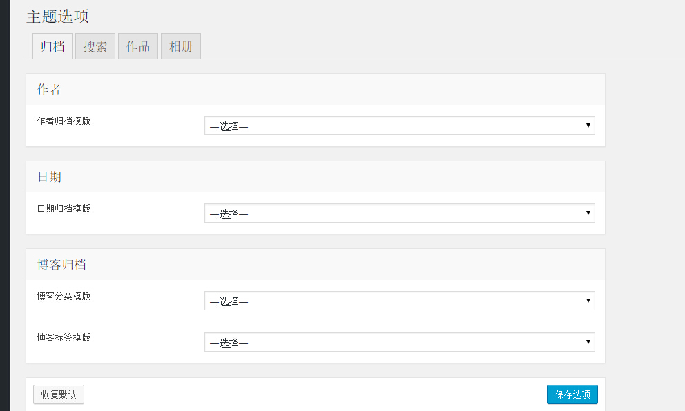 如图,如果我们按照The7.2 v2.1.5深度汉化版默认的方式,那么在文档归档页看到的文章归档布局如下: