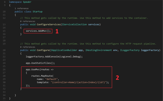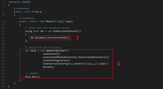 以下是值得关注的两个类:Startup.cs 和 Program.cs: