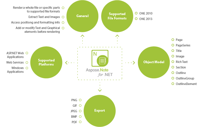 Aspose.Note 是一款处理Microsoft Office OneNote文件的类库,是 Microsoft OneNote Object Model 的一个替代品,能提供更好的性能。开发人员可以在C#、VB.NET、ASP.NET web应用、web服务和Windows应用中中处理.one文件。它能够打开文件并操作OneNote元素,从文本、图像和属性到更多复杂元素,然后到 PNG、GIF、JPEG、BMP或PDF格式。