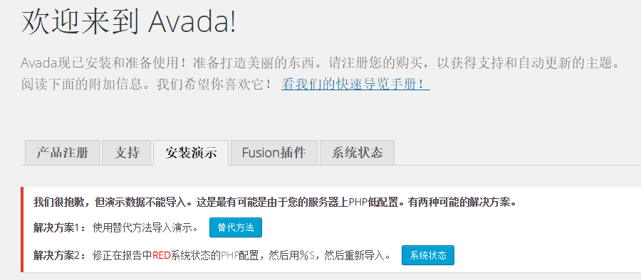 Avada v3.8.6无法导入演示数据的解决办法!如图: