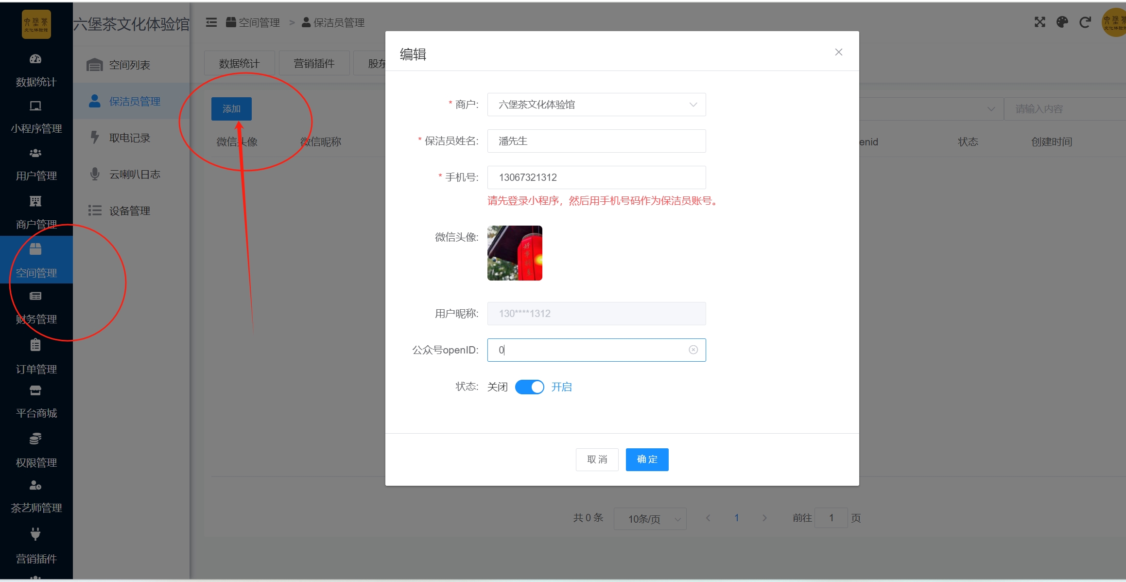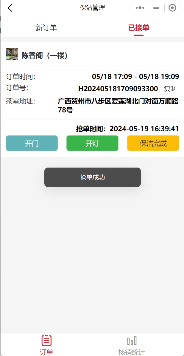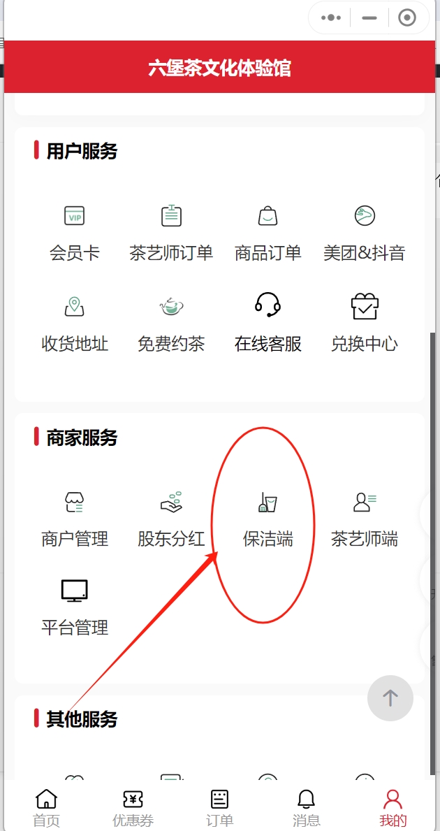 打开小程序——>个人中心——>保洁端,自动生成保洁权限
