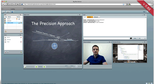 BigBlueButton 是一个使用 ActionScript 开发的在线视频会议系统或者是远程教育系统,主要功能包括在线PPT演示、视频交流和语音交流,还可以进行文字交流、举手发言等功能,特别适合用在网上教学,支持中文等多种语音。