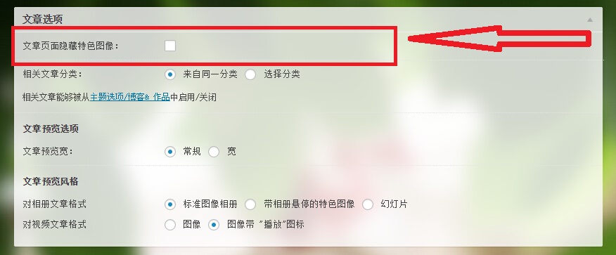 以后我们在添加文章的时候就不用去里这个文章选项的文章页面隐藏特色图像问题了。解决这一蛋疼的问题。