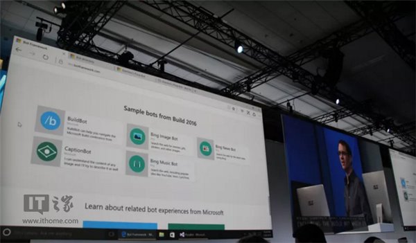 3月31日消息,微软在Build2016大会上表示,未来将是一个充满聊天机器人的世界,为此他们推出了微软Bot Framework,能够允许任何人制作自己的聊天机器人,微软则提供“cognitive microservices”(认知微服务),该工具能够理解自然语言或者对图片进行分析,初期开放22个API,可用于集成到应用中。
