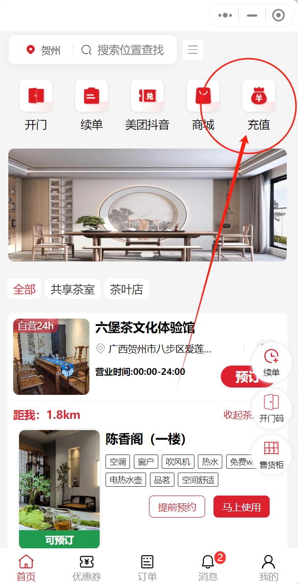 点开运营系统后台,营销插件,找到充值 充值设置,如下是常用的,冲多少送多少,金额直接设置,最后点保存,完成 2024年5月19日芊雅共享空间系统 抖音团购核销配置教程不通过保洁端,如何更改包间的显示状态? 相关文章芊雅共享空间系统中如何设置包间套餐价格?2025年4月16日无人自助茶室,棋牌室如何设置抖店(抖音来客)核销?2025年1月25日系统如何添加在线客服?2024年6月10日抖音团购核销配置教程2024年5月29日不通过保洁端,如何更改包间的显示状态?2024年5月19日共享茶室、共享棋牌室业态中保洁如何配置和使用?2024年5月19日