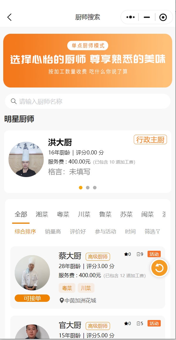 私厨到家服务平台系统源码下载,厨师上门系统源码