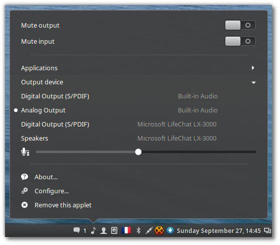 Cinnamon 2.8.0 发布,该版本的声音插件布局如下: