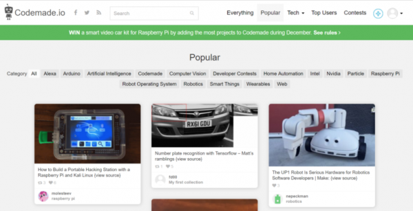 CodeMade是用户生成的物理计算机产品收藏合集,并能连接访问到完整的源代码。项目按照分类进行分组,涵盖每个人都可以掌握的基础Arduino项目,也有用到人工智能和深度学习的更复杂项目。这能够让初学者很容易找到一个酷炫的项目并以此进行建设。
