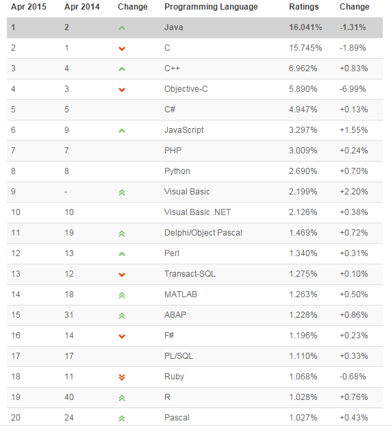 根据TIOBE 编程语言排行榜(2015年4月)来介绍编程语言创始人,我们感谢这些人,为我们提供这些优秀的编程语言。