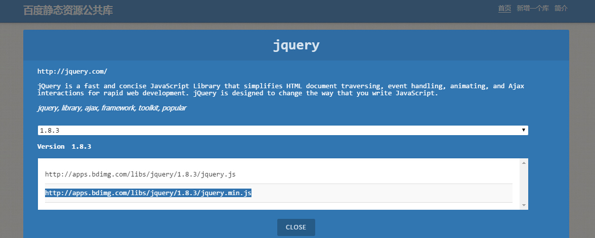 第一步: 加载jQuery(推荐百度静态资源公共库:http://cdn.code.baidu.com/)