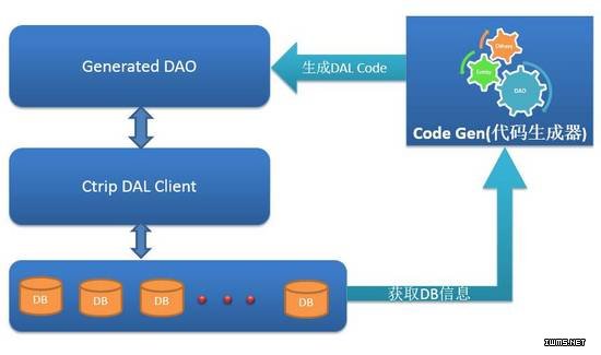 Ctrip DAL与一般数据库框架最大的不同是从企业跨部门的角度,统一管理数据库相关资源。 通过部署代码生成器,企业可以做到有效的管理全公司的DAL开发团队,明确数据库归属和定制数据库访问。通过代码生成器生成的标准DAO代码与客户端配合使用,可以大幅提高工作效率,保证代码质量。解决了业内常见的伴随业务成长而带来的系统维护困难,开发效率低下,代码风格五花八门,代码质量参差不齐等痛点问题。