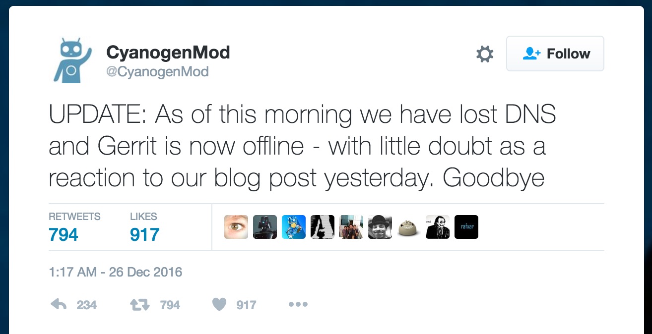 CyanogenMod 团队更新了一条推特,正式向大众告别。 CM 的社区官网 CyanogenMod.org 已经无法访问。CM 也在其 Twitter 官方账号上宣布:CM 网站的 DNS 已经被劫持,而它的 Gerrit(一款代码审查软件)也已经处于离线状态。 2016年12月27日业界资讯 树莓派基金会发布桌面操作系统 PIXEL OS看 360 如何打造百万亿级的日志搜索引擎 相关文章老板必知的四大财务大坑,千万别踩!2026年2月2日智慧托管式洗车2026年1月27日仿死了吗 app 源码下载,仿死了吗 app 定制开发2026年1月16日茶叶店茶叶库存管理软件,茶叶店开单管理工具系统源码2026年1月9日打通核心企业+金融机构,企业级供应链金融平台解决方案,供应链金融系统源码2026年1月8日微信小程序自动化发布系统,小程序自动化上传工具2026年1月6日