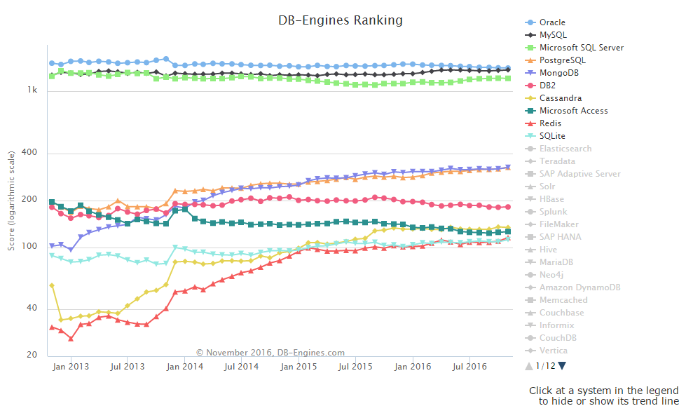 DB-Engines 最近发布了 2016 年 11 月份的数据库排名。