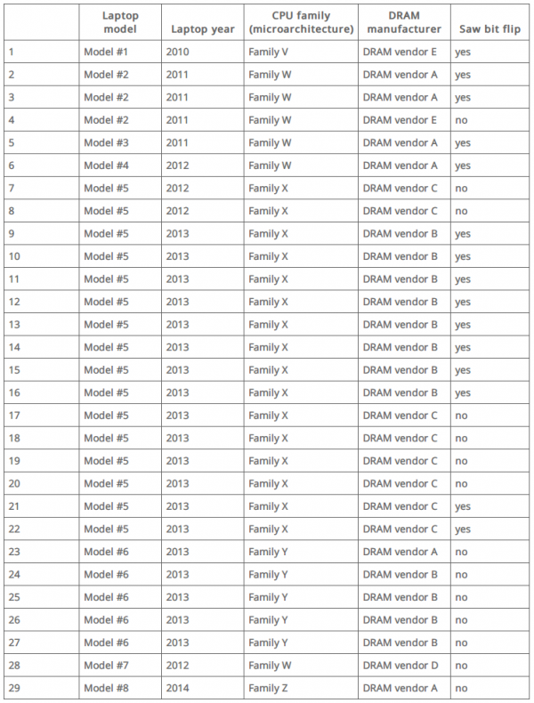 附注:存在“位翻转”漏洞的DDR3内存模块: