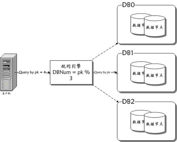 在一开始,TDDL的主要功能就是做数据库切分,一个或一组SQL请求提交到TDDL,TDDL进行规则运算后得知SQL应该被分发到哪个机器,直接将SQL转发到对应机器即可(如图1)。