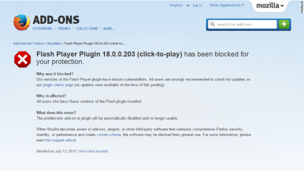 上周,一个叫做Hacking Team的黑客团队利用Flash插件攻击用户电脑并在上边安装了恶意软件。为此,Facebook方面发推文:“Adobe是时候宣布终结Flash 了。”很快,Mozilla支持团队主管Mark Schmidt也迅速做出回应—Firefox已经禁用Flash插件。