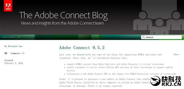 虽然大家都理解,但官方如此“明目张胆”确实有些不妥,于是很快博客文章标题被改成了极为简单的“Adobe Connect 9.5.2”,文章链接地址则改成了“add-in”,不过内容没有任何变化。