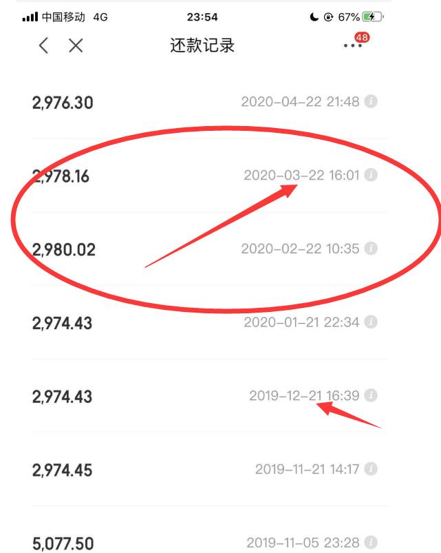 清楚的看到2月,3月有两笔逾期。但是笔者查询后是发现,都是还款日推迟了一天还款,是延迟了1天还款导致的逾期问题!!!