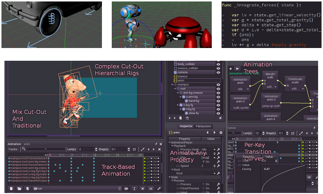 Godot是一个全新开发的游戏引擎,其功能集类似知名的跨平台游戏引擎Unity,可用于开发PC、主机、移动和Web游戏。开发者声称引擎的2D和动画支持要强于Unity,表示在功能和特性上没有其它开源游戏引擎能相媲美。Godot引擎内置了类似Unity的编辑器,GUI工具 包,2D/3D物理支持,支持OpenGL ES 2.0 功能集的3D渲染器,易于学习的语言和API,支持用ASM.js或Google Native Client输出HTML5代码,支持 Linux、Windows和OSX开发平台。