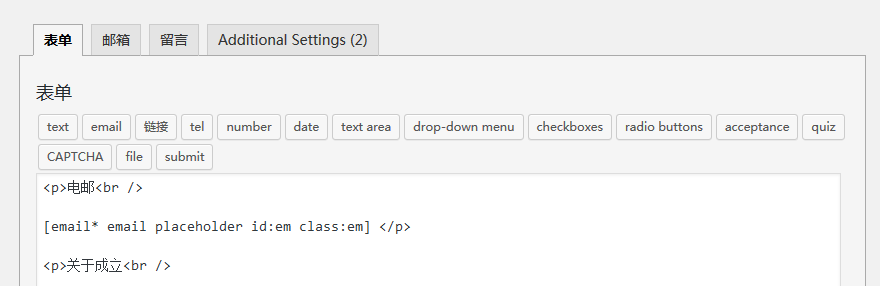 如上汉化版本截图,打开表单编辑器,表单元素及其丰富,直接秒杀Contact Form 7