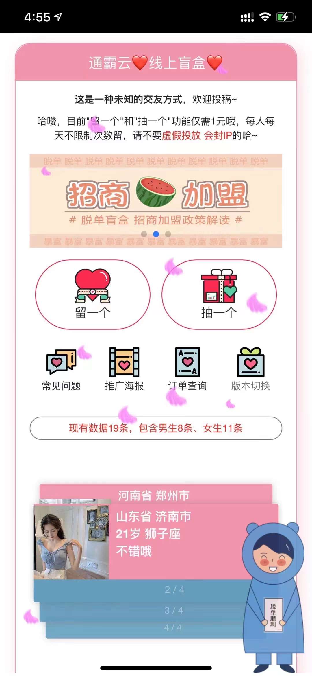 H5盲盒交友源码出售!抖音最火项目,特色功能;自定义虚拟数量、推广海报、IP黑名单、自定义价格、强制先留在抽、区分普通盲盒和条件盲盒、新闻和广告模块,等众多功能,三套ui。 2021年10月8日App方案 申请软件著作权的好处有哪些?哪里申请软著靠谱方便?共享茶室管理系统客户指导意见 相关文章芊雅上门厨师系统源码:一键复制“私厨到家”财富模式,餐饮O2O新风口!2025年10月28日厨师上门系统可行性分析报告2025年10月21日厨师们的就业选项又多了一个!好事!上门做菜私厨平台,等你来挑战!2025年6月11日震旦AD220MC驱动下载,AD220MC官方驱动2025年6月1日校友会系统源码,校友会系统小程序上线2025年5月30日股票交易app源码,股票交易系统二次开发2025年5月28日