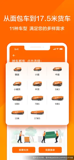 够全!五大车型,大货车车型:6米8、7米6、9米6大货车开通。