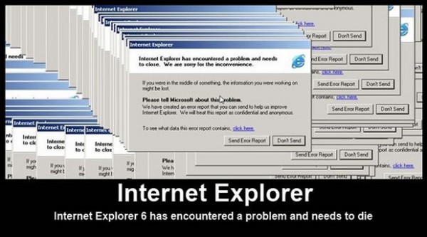 2006 年,IE 6被评为“史上第八糟科技产品”。在2011年评选的“科技史上最糟糕的50大产品”中,IE 6位居第11位。对于从事过任何严谨网页设计的用户来说,IE 6可能会让他们产生跳崖的冲动,因为该浏览器难以给予CSS 2适当支持,也缺乏在PNG图像中对Alpha透明度的支持,并且经常会崩溃。