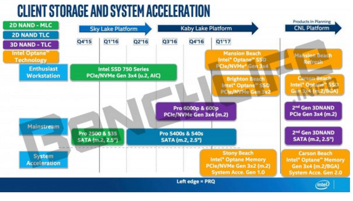 系统加速内存也会升级到第二代,同样支持PCI-E 3.0 x4,同样有M.2、BGA,而且代号都是一样的,看起来到那时候才会是Optane技术的完全展现。