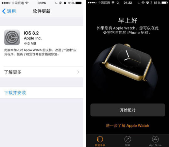 iOS 8.2 正式发布,iOS 8.2主要是加入了对即将上市的Apple Watch支持,改进了“健康”应用,并且包含提高稳定性和错误修复。