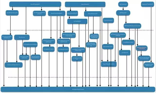 粗略统计了一下,系统中一共有25个类与NSManageContext紧紧耦合。形成了下图中混乱的局面: