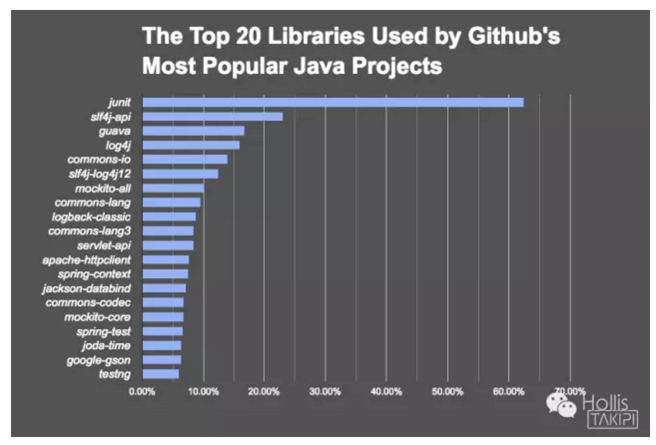 我们分析了GitHub中47,251个依赖,从中找出了排名前一百的Java类库,让我们看看谁在前面,谁在后面。
