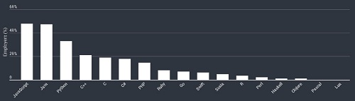 而在此之前知名技术招聘公司 HackerRank 也发布了一份 2018 年开发者技能报告。他们表示,JavaScript 是更受企业青睐的编程语言,企业更渴望招聘 JavaScript 方面的人才。该报告调查了全球超过 39000 名的开发者,编程语言当然是这类调查中最受欢迎的话题,JavaScript 和 Java 是最受行业雇主青睐的语言,有 47% 的受访者表示擅长这两门语言的开发者差不多被所有行业的雇主在抢着要。