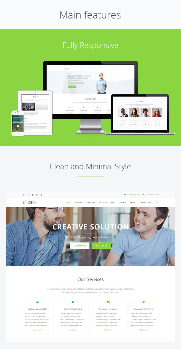 JoeBy是充分响应灵活和时尚的WordPress主题为企业/机构,企业和投资组合的网站。布局由组织良好的成分 – 所以很容易修改和定制的一切。极简/清新的风格非常适合于任何类型的业务。优雅时尚的布局,重点放在清洁,微妙的设计元素。