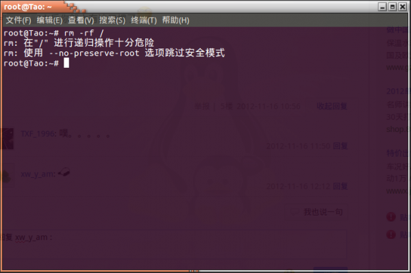 这 个在论坛上发帖的用户叫“9233”,他在帖子中说:“今天我和我的朋友在一台MSI笔记本上运行了rm -rf -no-preserve-root命令,因为我们想解决Arch安装膨胀的问题。当然我们也可以格式化根分区,然后重新安装Arch。”(后面他提了一 句说,instead we thought it would be fun seeing the GNOME installation die…)