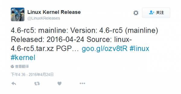 4月24日,按照惯例大神Linus Torvalds为即将到来的Linux Kernel 4.6发布最新候选版本。从稳定的更新频率来看Linux Kernel 4.6进展非常顺利,这是第五个候选版本,不过Linus Torvalds认为4.6内核可能并不需要第7个候选版本。
