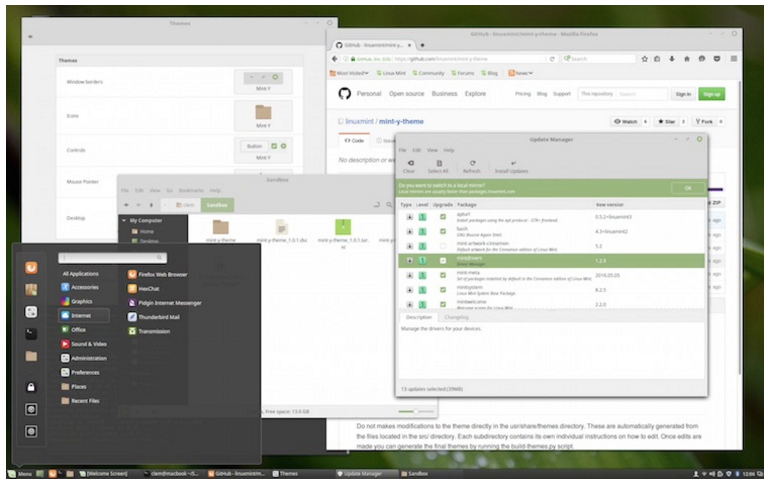 现在你能够在 Linux Mint 18(Sarah)的 Cinnamon 版本中看到这个全新的扁平 Mint-Y 主题,在文件夹中使用了 Paper 图标,但是 Mint-Y 并非是 Linux Mint 18 的默认主题,在正式发布之后依然搭载旧的 Mint-X 风格。