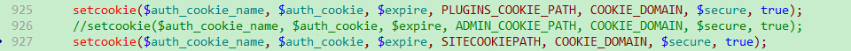 setcookie($auth_cookie_name, $auth_cookie, $expire, ADMIN_COOKIE_PATH, COOKIE_DOMAIN, $secure, true);