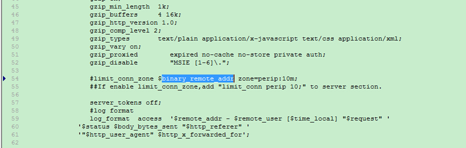#limit_conn_zone $binary_remote_addr zone=perip:10m;